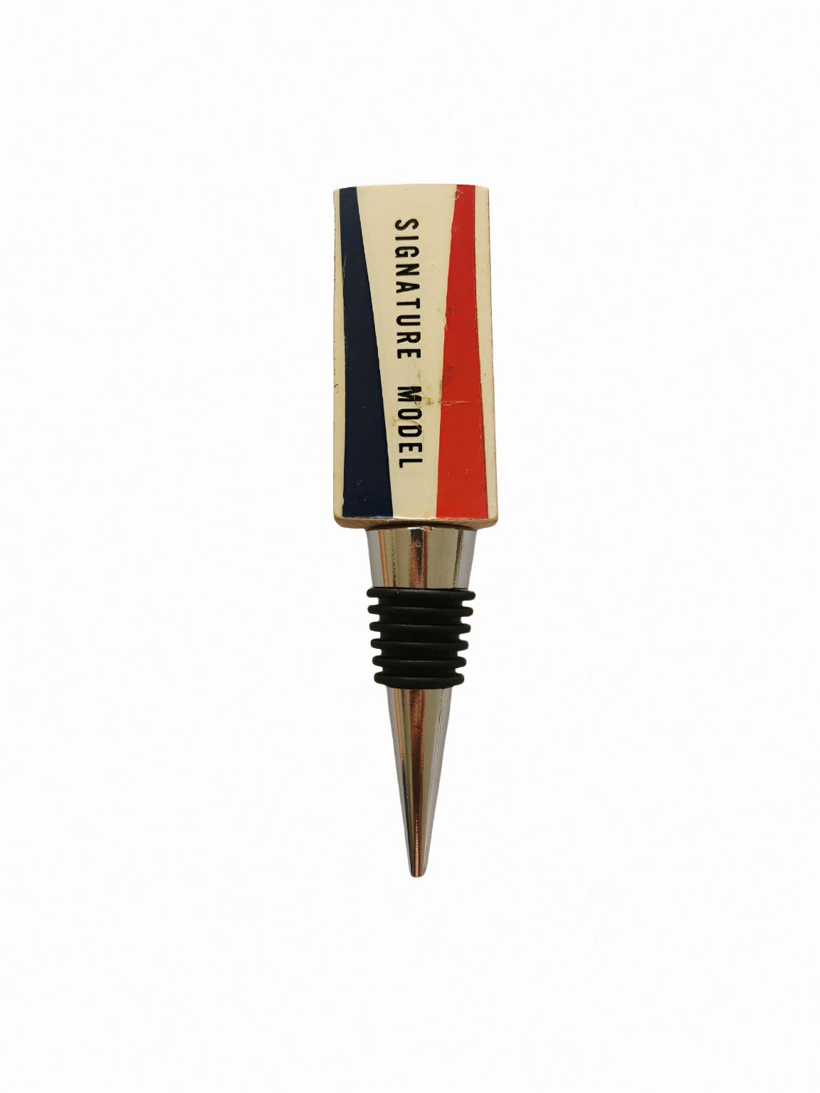 Bouchon confectionné à partir d'une ancienne raquette de tennis en bois.