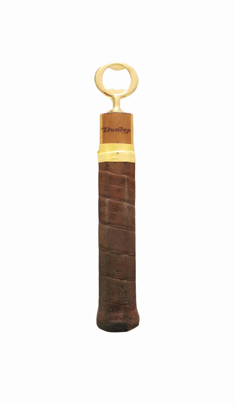 Décapsuleur confectionné à partir d'une ancienne raquette de tennis en bois.