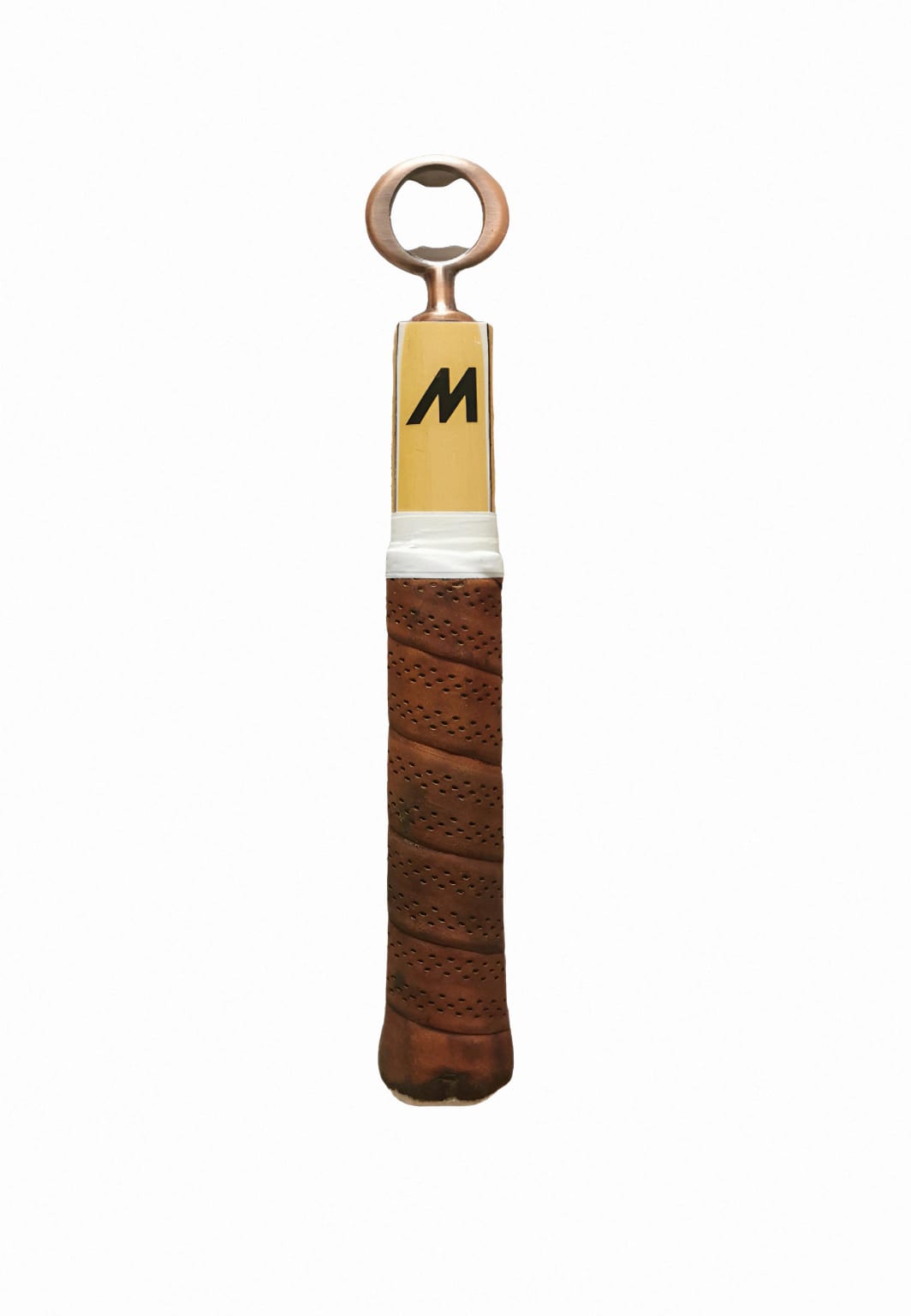 Décapsuleur confectionné à partir d'une ancienne raquette de tennis en bois.