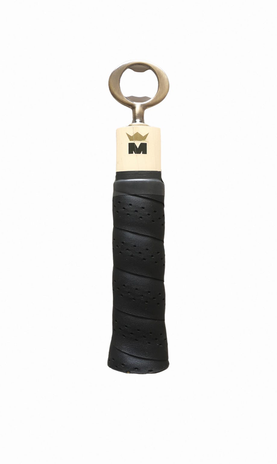 Décapsuleur confectionné à partir d'une ancienne raquette de tennis en bois.