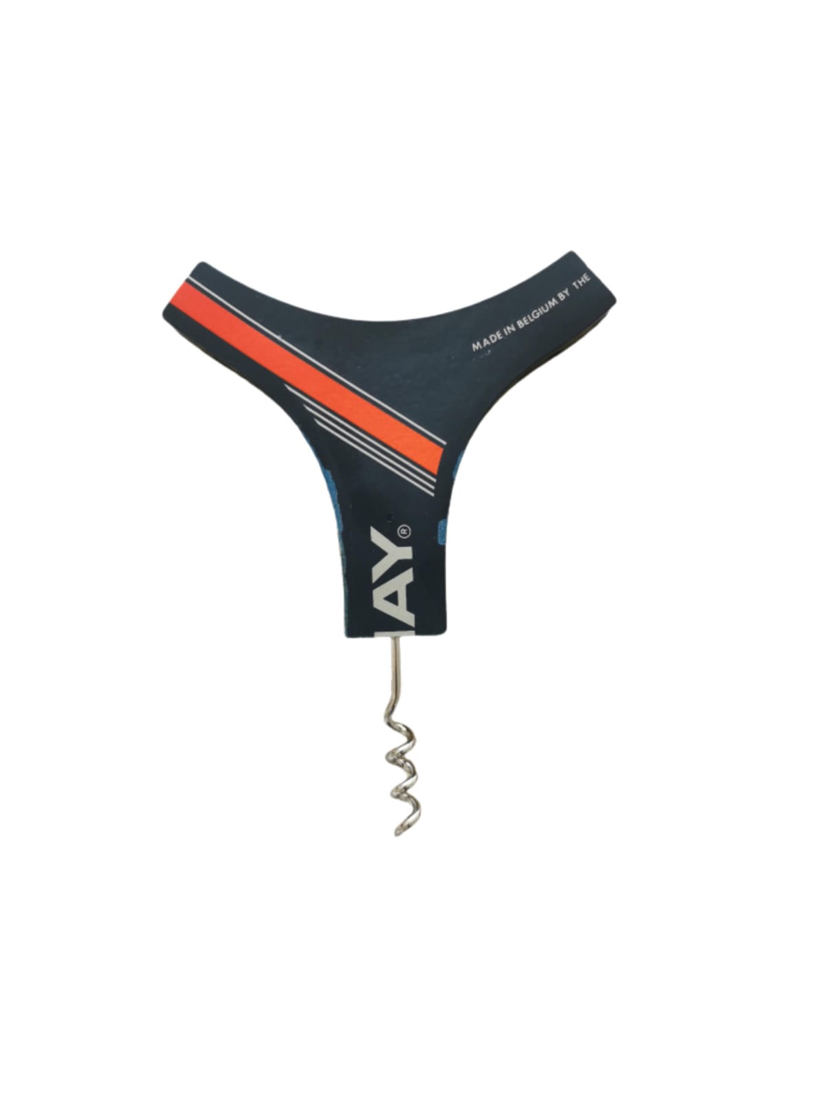 Tire-bouchon confectionné à partir d'une ancienne raquette de tennis en bois.