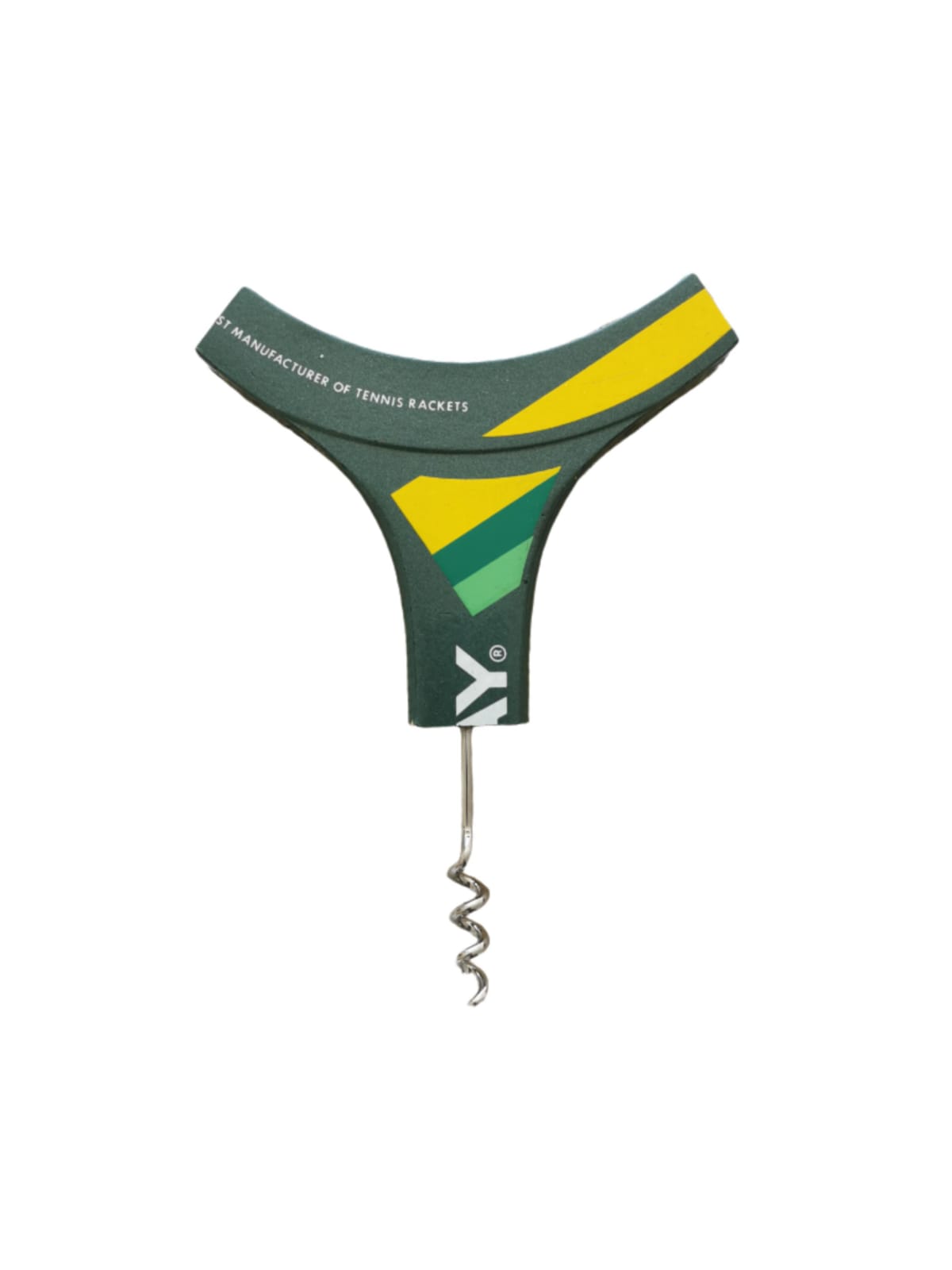 Tire-bouchon confectionné à partir d'une ancienne raquette de tennis en bois.