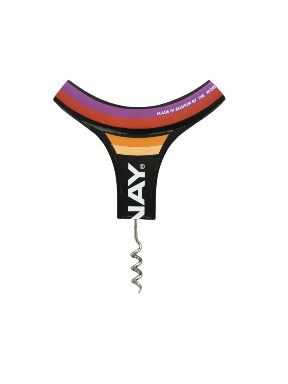 Tire-bouchon confectionné à partir d'une ancienne raquette de tennis en bois.