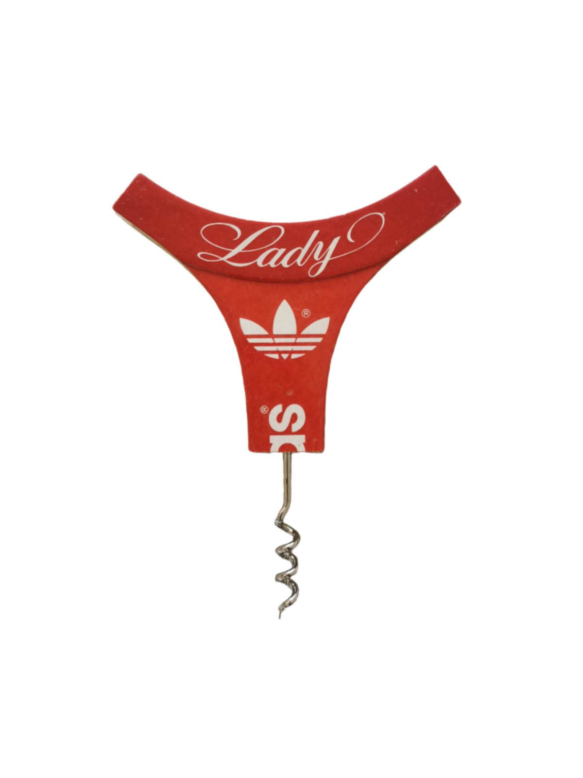 Tire-bouchon confectionné à partir d'une ancienne raquette de tennis en bois.